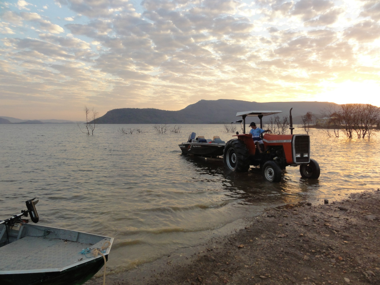 Lago de Serra da Mesa (o lago artificial da Usina de Serra da Mesa) é o segundo maior lago do Brasil, localizado no Noroeste de Goiás, formado para a construção da Usina Hidrelétrica de Serra da Mesa. Está em área inundada, com 1784 km² na elevação 460 m (em relação ao nível do mar), é o primeiro em volume de água 54,4 bilhões de metros cúbicos, tem atraído expressivo investimento na área de turismo. Formado pelos rios Tocantins, Traíras e Maranhão, tornou-se uma das melhores regiões para pesca esportiva de peixes como o Tucunaré, campeão de preferência dos pescadores de iscas artificiais. Suas águas são alcalinas, dificultando assim a proliferação de mosquitos, pernilongos e mutucas, tornando esportes aquáticos viáveis.O lago é rodeado por morros com elevações que podem alcançar os 1400 metros de altitude, tornando a paisagem exuberante...
